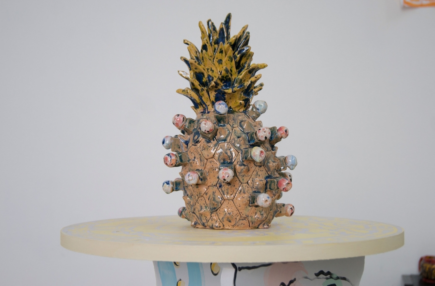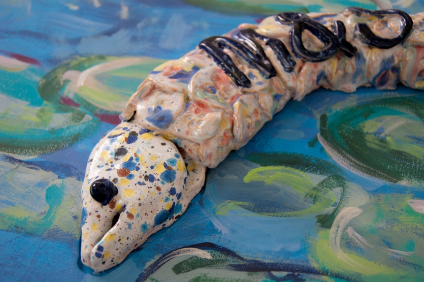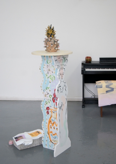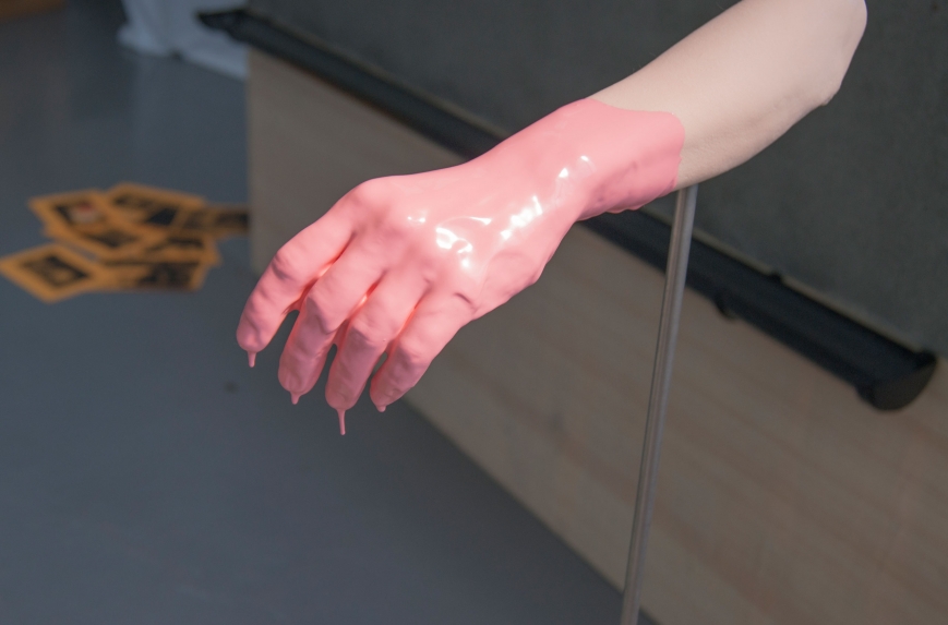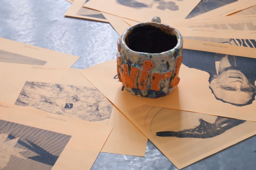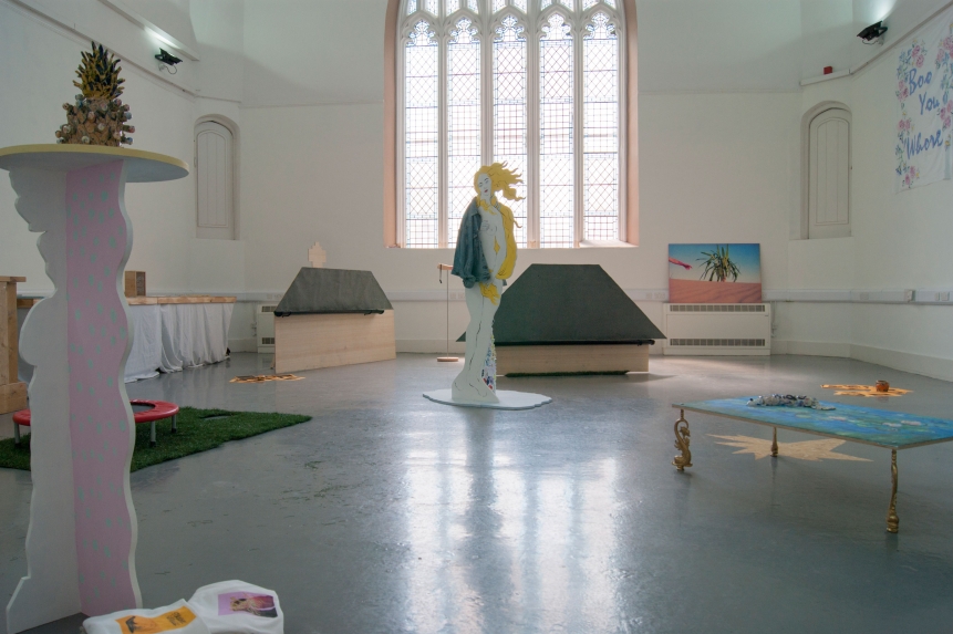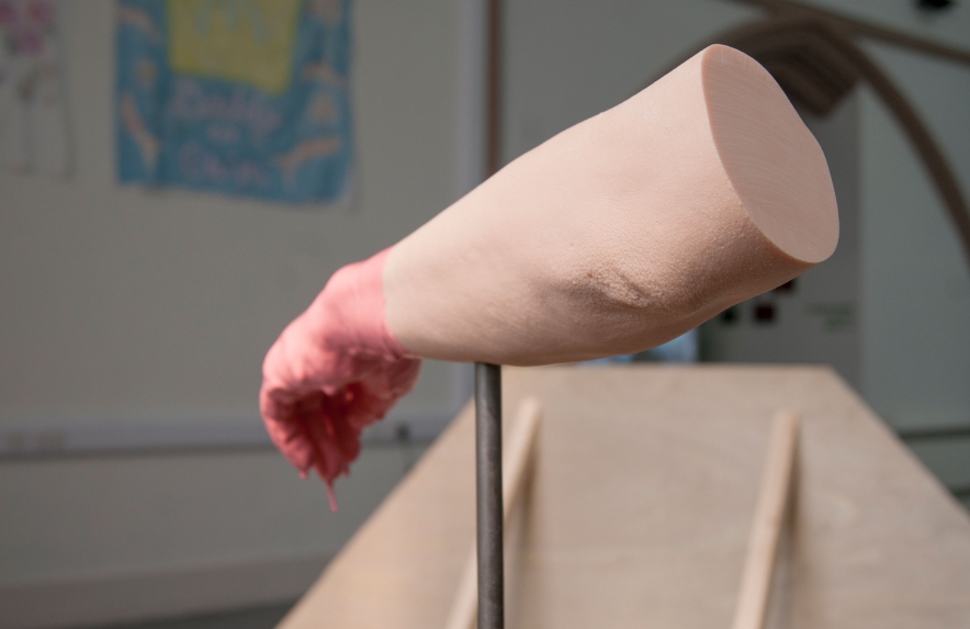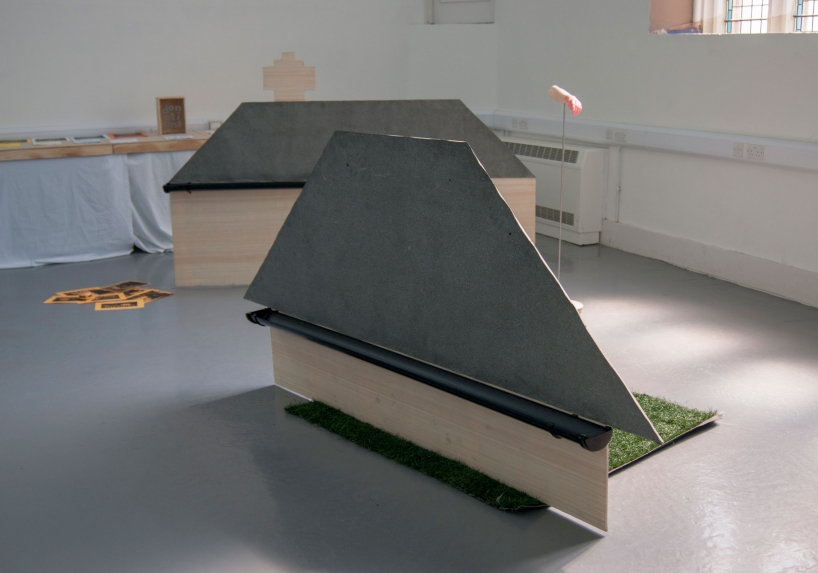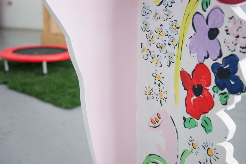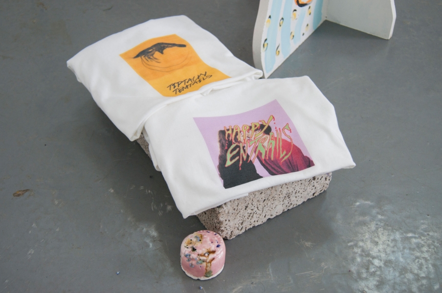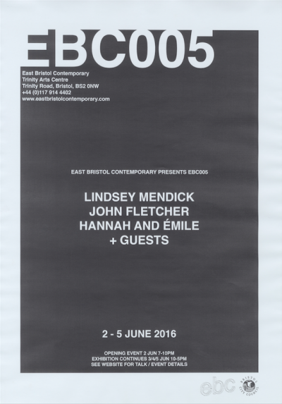 ebc005 featured sculpture and a trampoline by john (london), ceramic, fabric and sculptural works by lindsey (london), and a cast arm and ephemera by hannah and emile (bristol). the exhibition opening featured a performance by john who pretended to be a mole, and also a piano performance by lindsey who attempted to remember a song by christina aguilera she had learnt a long time ago. in addition ebc005’s exhibition programme also presented an improvisedĀ guided tour of local suburbs by john, a performance by emile about how embarrassed he gets talking about his work, andĀ a skype call with instagram residents millington|marriot. each artist also selected another artist’s moving image work to be showcased on a showreel in the gallery shop, works presented here included work by patrick coyle and richie moment.