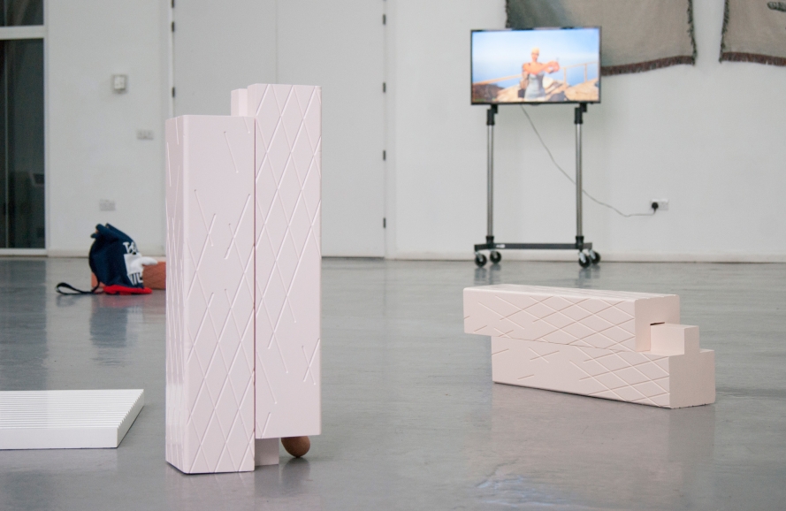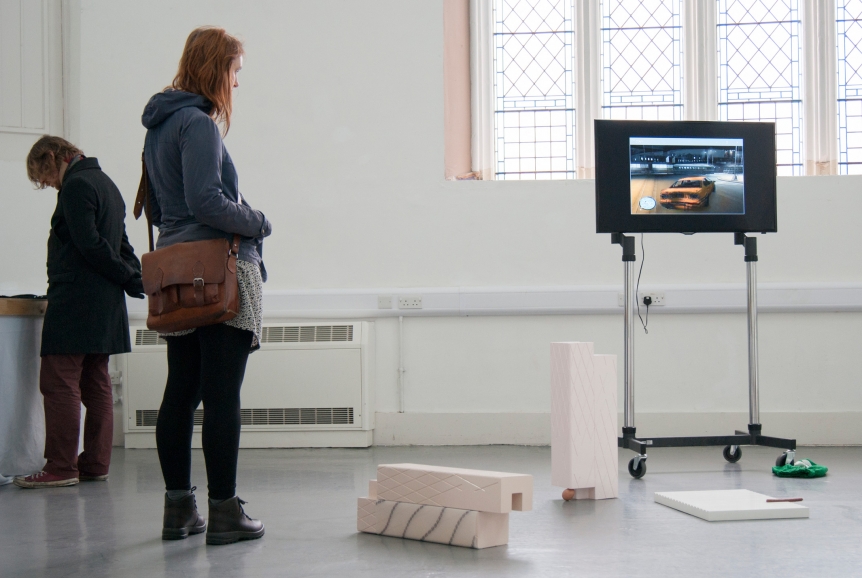 this exhibition presented ebc uwe graduate award winner of 2016; alasdair munro and other artists of his and ebc’s selection. for the exhibition, alasdair (bristol) presented two new moving image works that were generated in the popular video game grand theft auto, this was alongside wall hangings, wall drawings, and fabric props by alfie (leeds), and sculptures by lily (leeds). an artist talk/tour also took place as part of the exhibition programme.