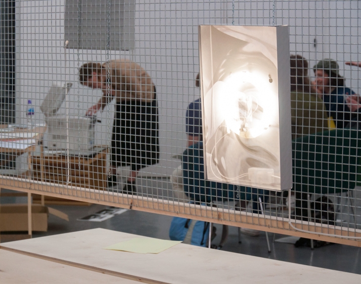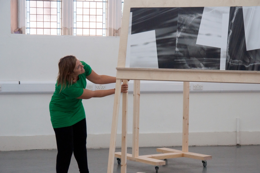 benjamin (bristol), bethan (leeds) and chris (london) were selected from an public open call for photography and print works (to participate artists had be or become gallery members). they worked collaboratively with artist sean kerr (bristol/kent) who created structures and modes of display for their art works. benjamin presented a series of analogue black and white prints, whilst bethan’s utilised a number of light boxes and transferred images. chris’s work consisted of a t-shirt, a flag, and a sticker.