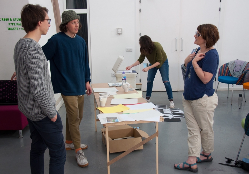the exhibition programme included a scanning and printing workshop with bethan, where participants created small black and white zines, as well as an informal artist talk/tour of ebc019.