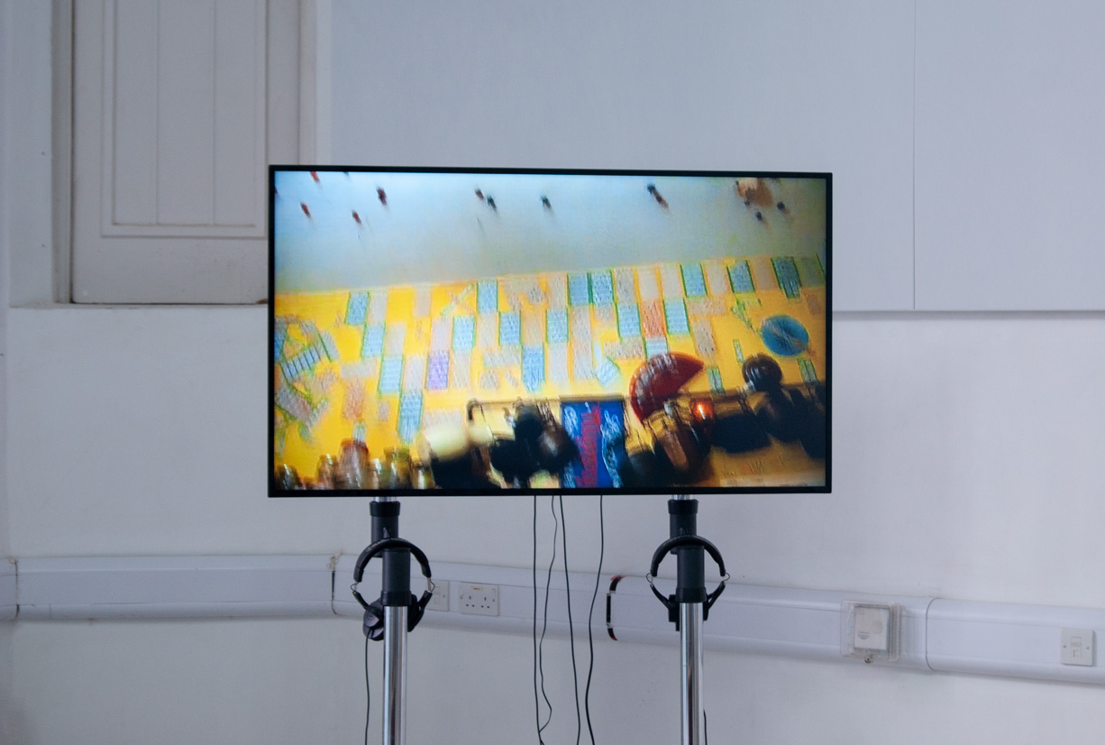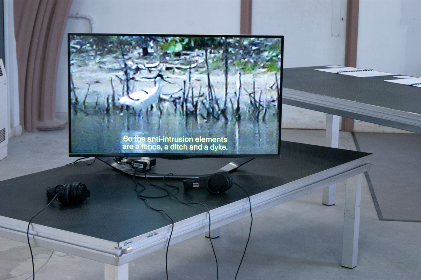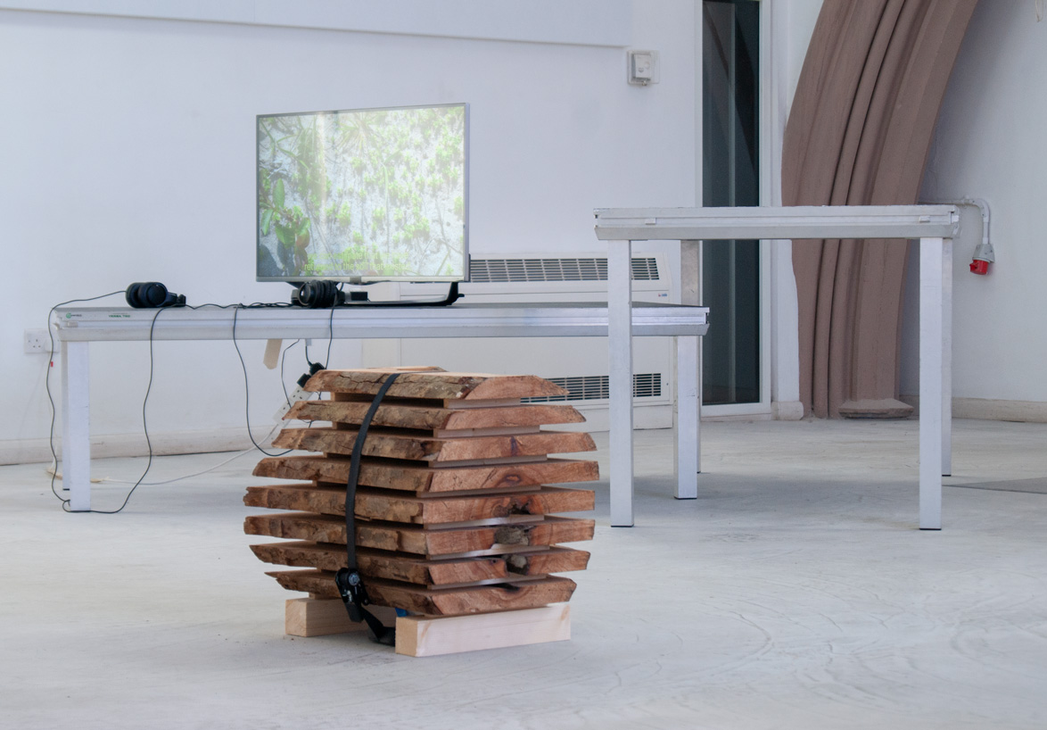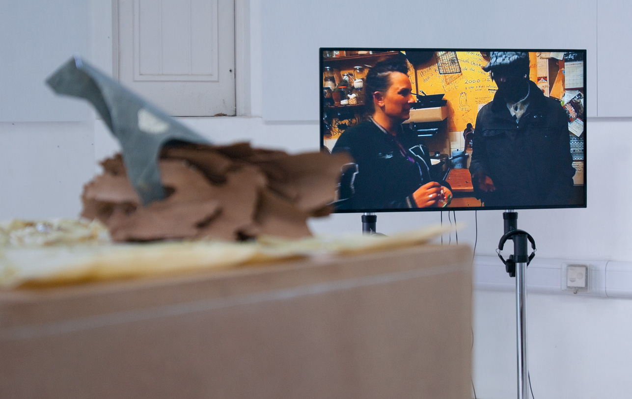 ebc024 featured ian (leeds), joel (calais/bristol), and hanna & faiza (london). the exhibition explored themes of reconfiguration, potential and change. ian presented several works that centred around the use of plane trees in public spaces, particularly in london, and his acquisition of one such tree that was subsequently cut and presented in the exhibition for use as seating. joel presented a film called no fixed aboad which focusses on the lives of people that he had spent time with and interviewed, all of the interviewees could be considered to live alternative or outsider lifestyles. hanna also presented a film work which documented the building of a nature reserve on the site of the former ‘jungle’ in calais, alongside some printed letters and documents of research.